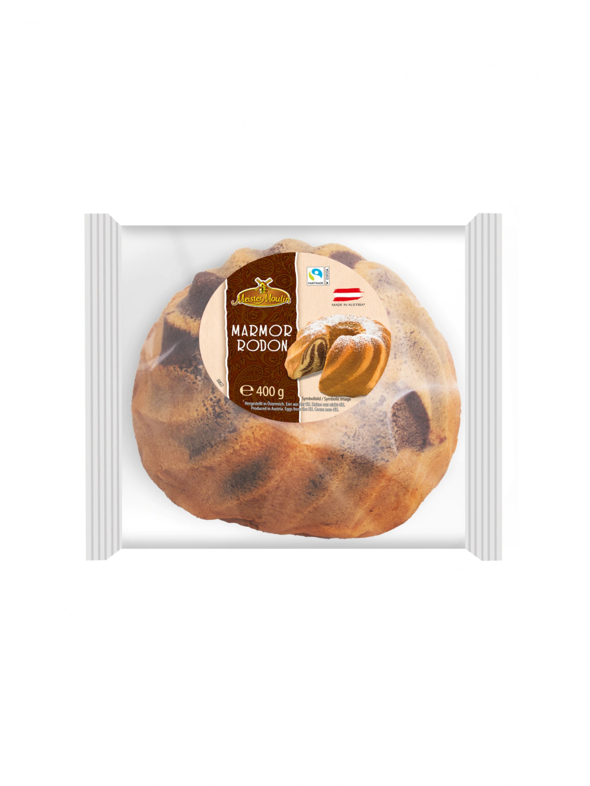 Făină de GRÂU, zahăr, ulei de rapiță, OU, umectant: E422, E420; Amidon de GRAU, ZER dulce pudra, cacao pudra degresata 1%, emulgatori: E471, E475; agenți de creștere: E450, E500, E516; aromă, sare, conservant: E202.
