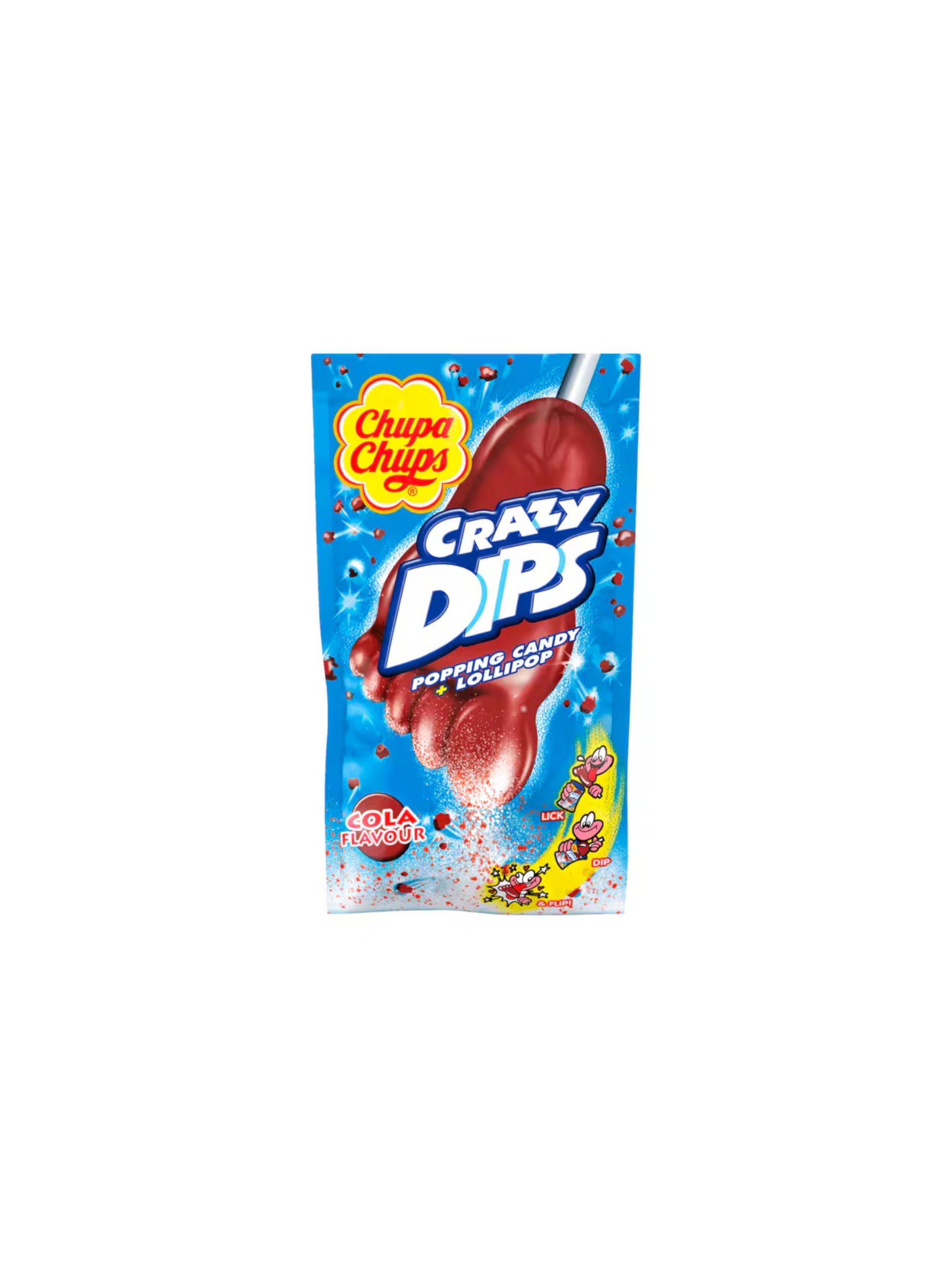 Acadelelele Chupa Chups Crazy Dips vă surprind cu o adevărată explozie de aromă după ce le înmuiați în granule crocante.