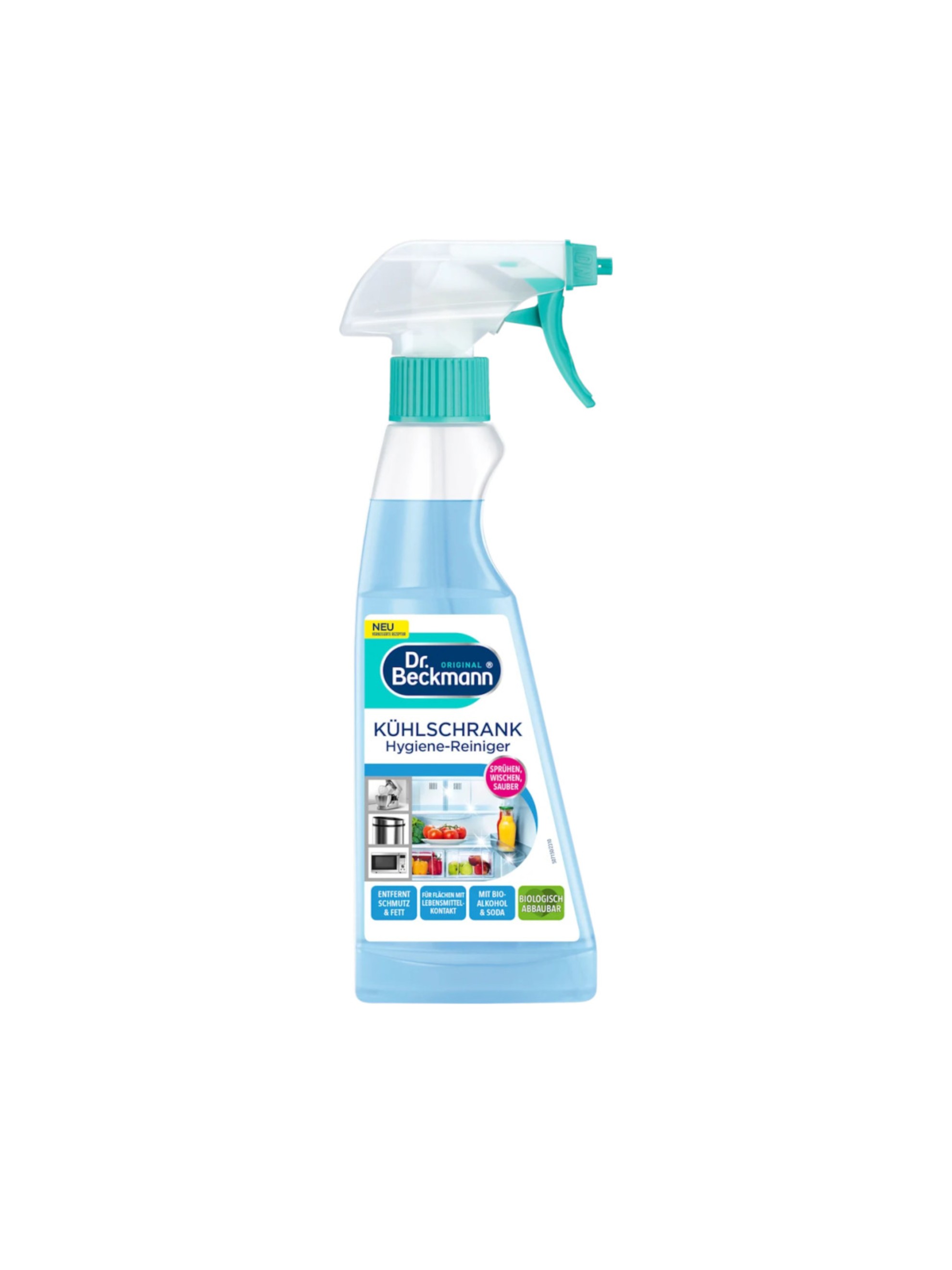 Spray-ul igienic de bucatarie de la Dr. Beckmann este potrivit în special pentru curățarea suprafețelor care intră în contact cu alimentele.