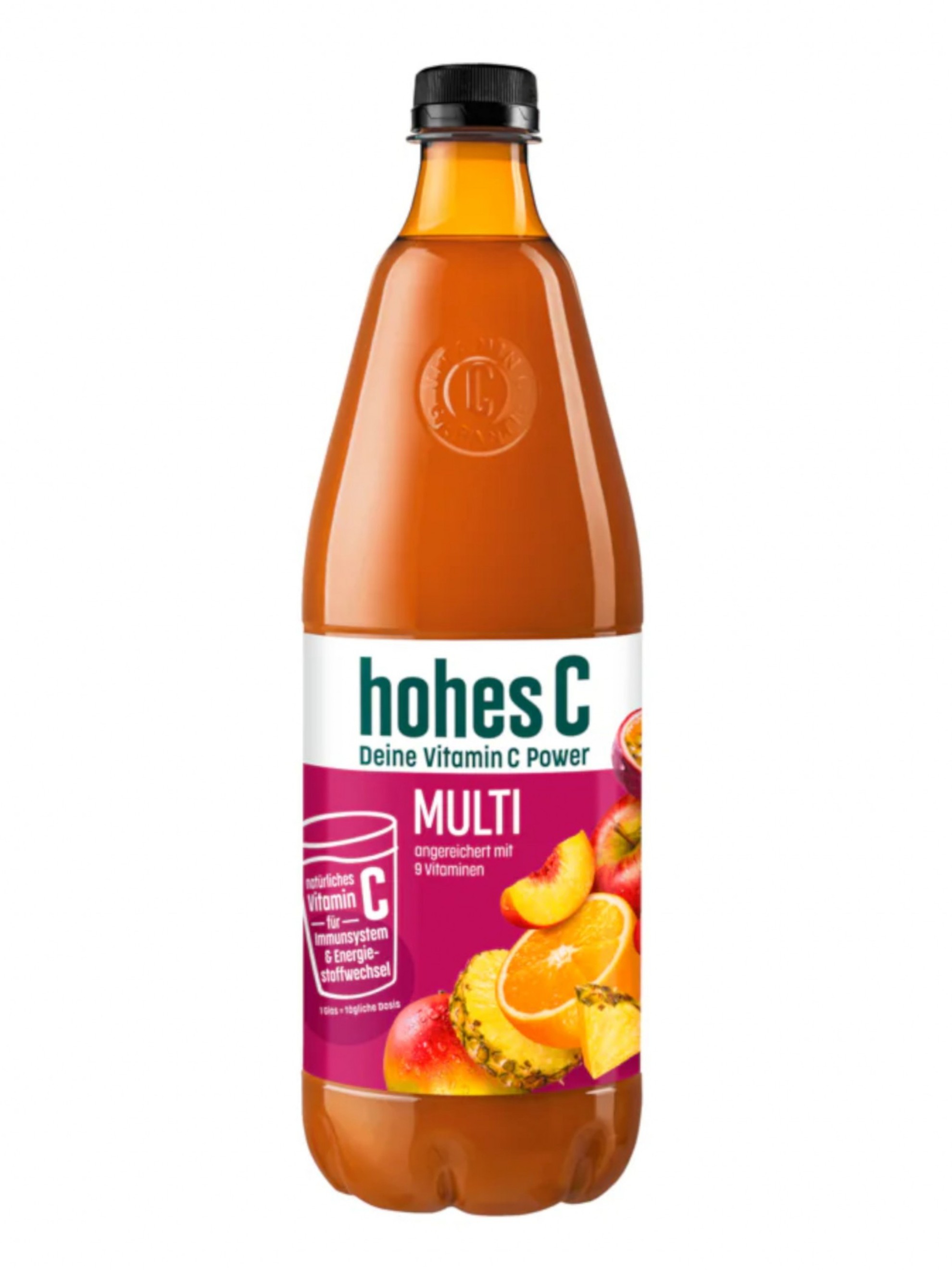 Ingrediente: suc multifructe din concentrate de suc de fructe (mere, portocale, ananas, acerola, fructul pasiunii, mango, lamaie), piure de banane si necarine, niacina, vitamina E, acid pantotenic, beta caroten, vitamina B6, vitamina B2, vitamina B1, acid folic, biotină, vitamina B12.