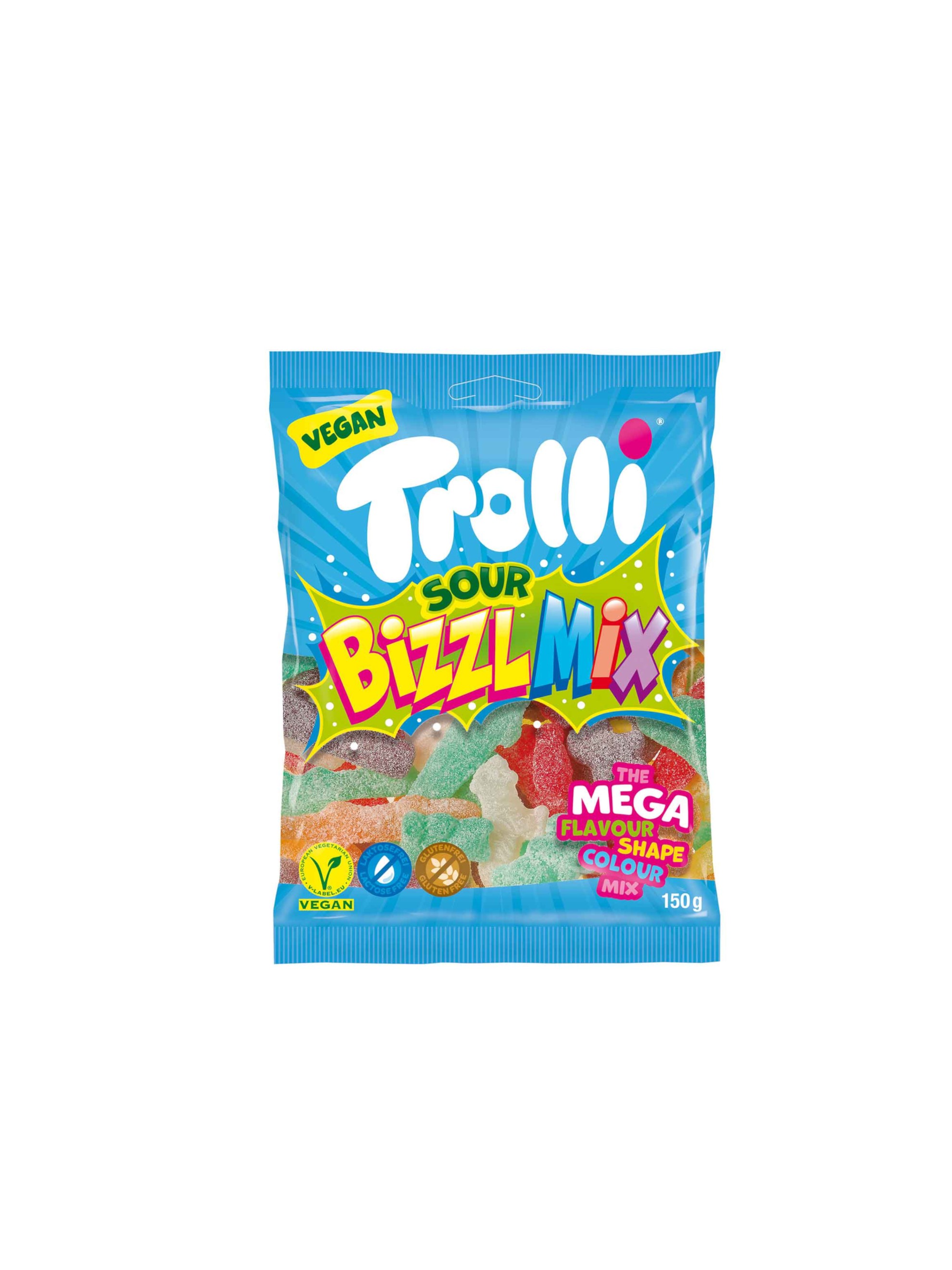 Trolli Sour Bizzl Mix este un amestec extra acrișor de jeleuri cu arome fructate în diferite forme și culori.