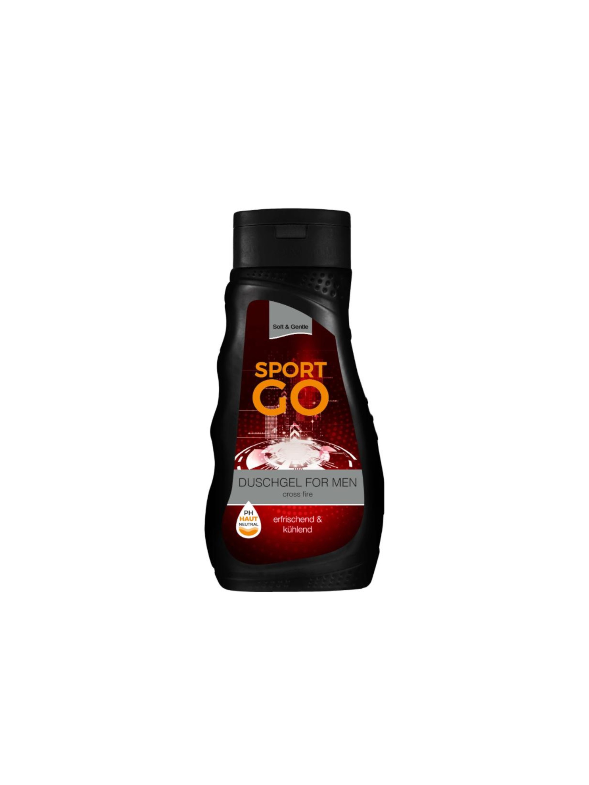 Gel de duș SPORT GO CROSS FIRE de la Soft&Gentle pentru bărbați, cu glicerină si sare de mare, pH neutru.