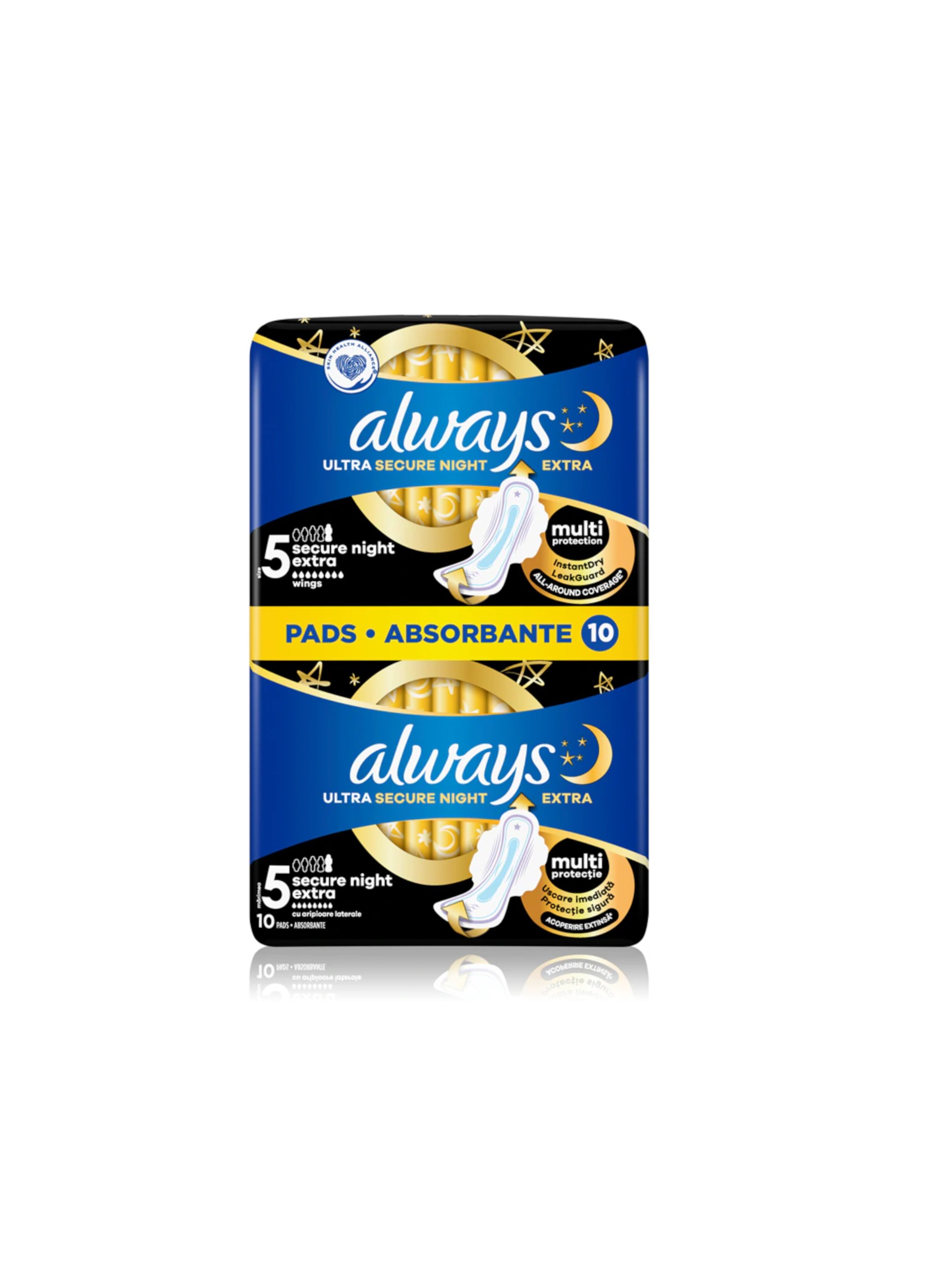 Absorbantele Always Ultra Secure Night Extra absorb lichidul în câteva secunde, menținând pielea uscată și oferindu-vă starea potrivită de confort în special pe timp de noapte.